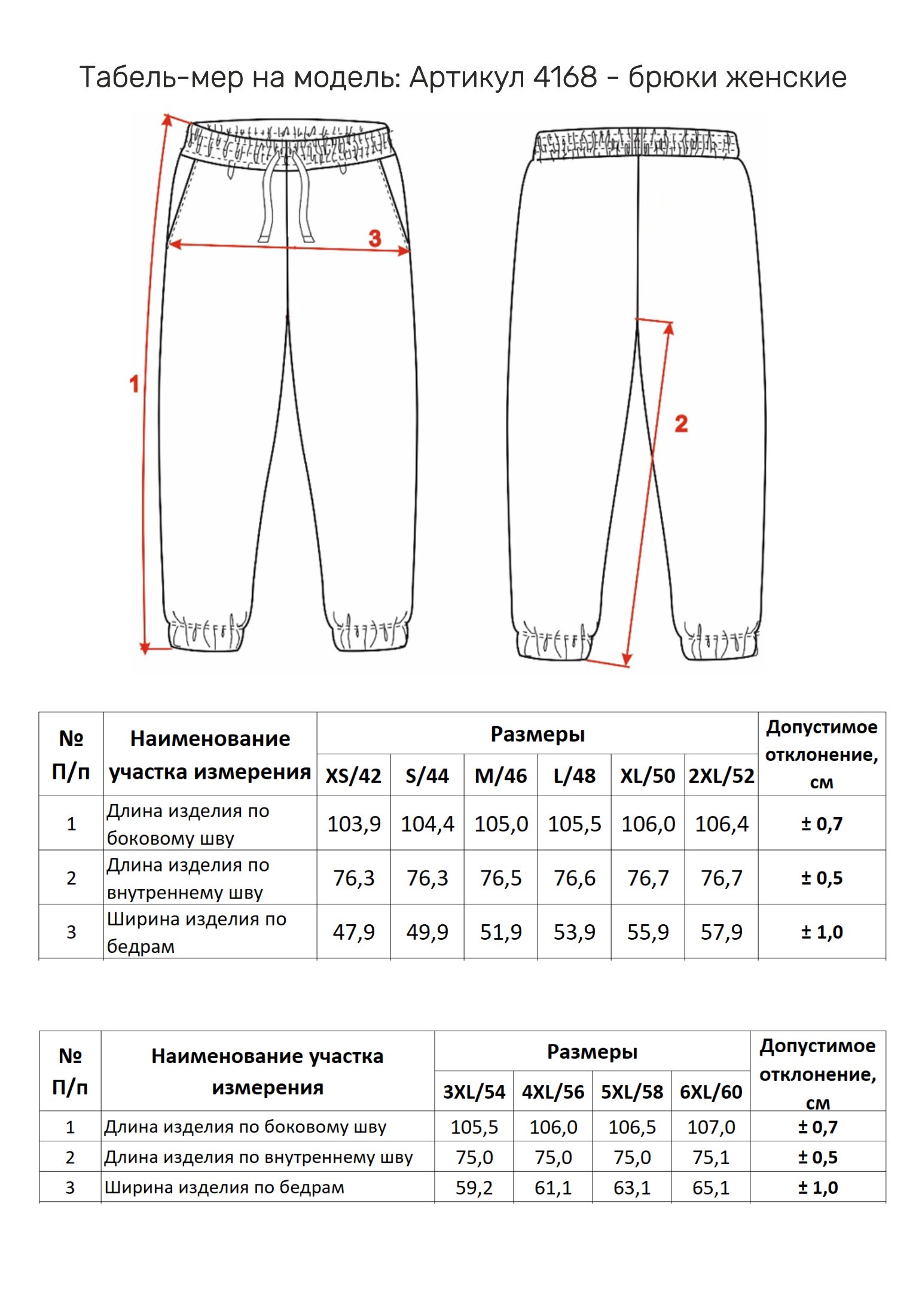 Таблица размеров