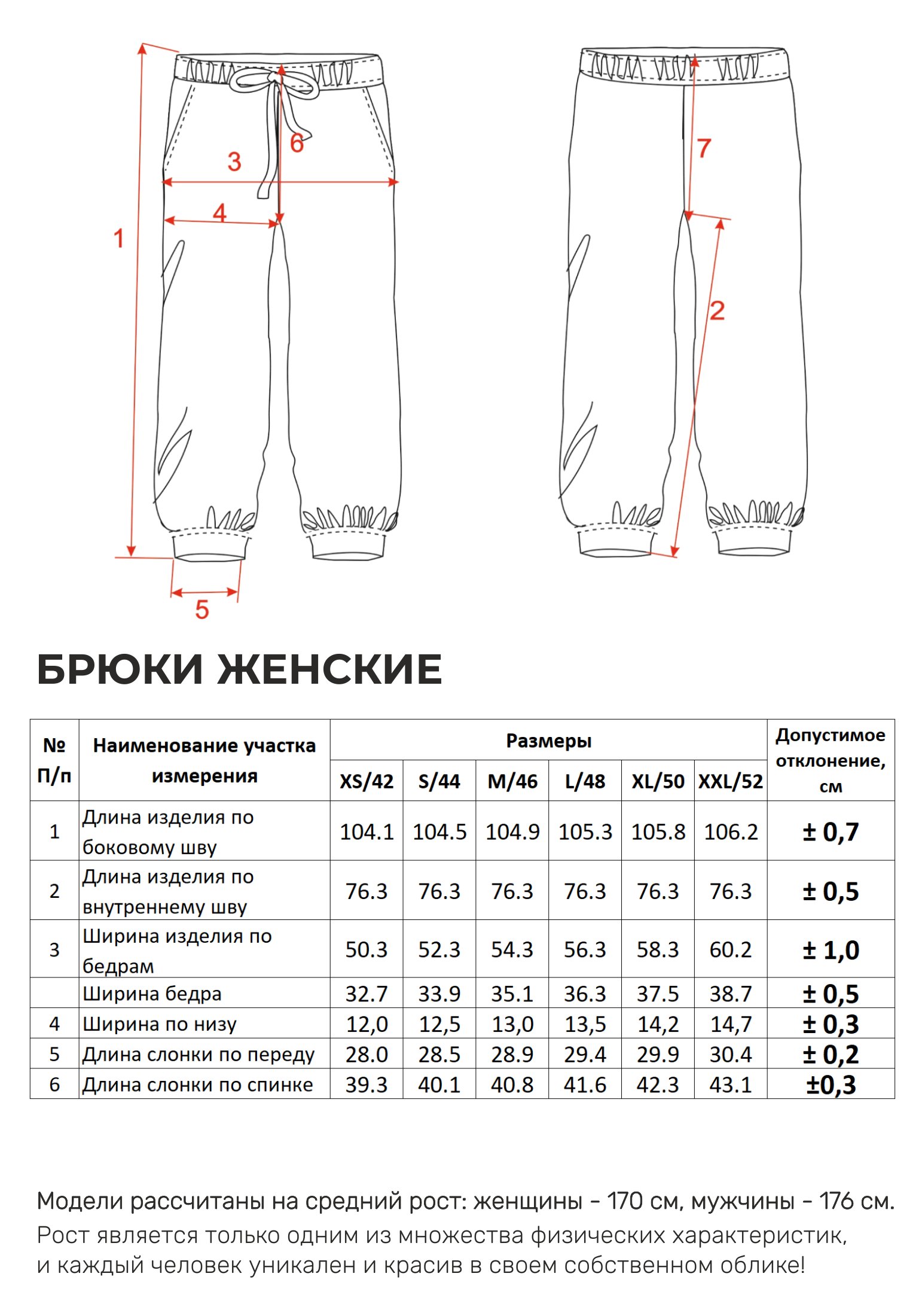 Параметры модели на фото -размер