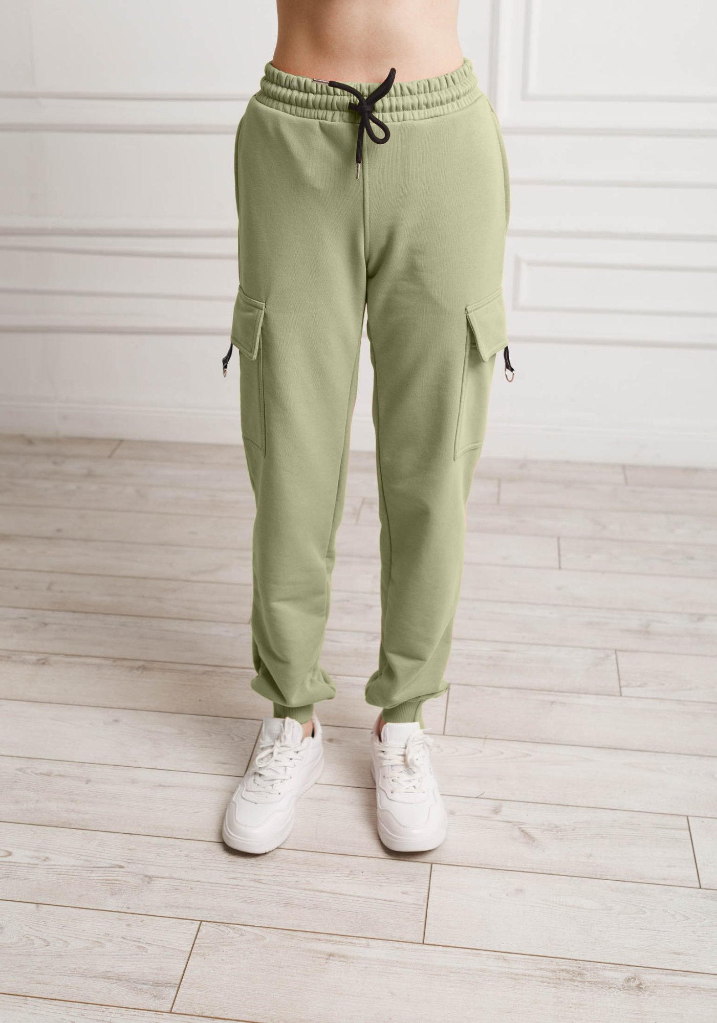 Женские спортивные брюки джоггеры в стиле карго выполнены из высококачественного турецкого футера 3-ех нитки без начеса. Комфортная высокая посадка создает элегантный силуэт, визуально удлиняет ноги и делает бёдра более изящными. На поясе брюк удобная и широкая резинка, шнур внутри пояса для возможности регулировки по фигуре. В данной модели имеется четыре функциональных кармана: два вдоль боковых швов, расположены в верху брюк, и два накладных кармана с клапанами по бокам изделия на линии бедра. По нижней части клапанаовдекоративный элемент из брендированной репсовой ленты со светоотражающими полосками, нижняя часть которой закреплена металлическим полукольцом. По низу изделия ассиметричные манжеты, которые ещё больше удлиняют и вытягивают силуэт. Свободный крой не стесняет Ваших движений. Отличный вариант для прогулок, занятий спортом и повседневной носки. Гладить с изнанки. Стирка при t не более 30С. Деликатный отжим, отбеливание запрещено.